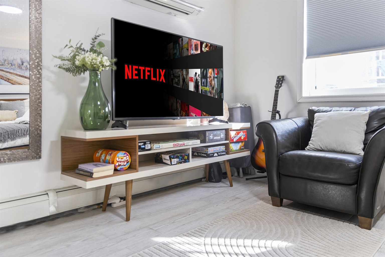 Unwind by the warm glow of the LED fireplace, stream your favorites on the Smart TV (bring your logins), or strum a few songs on the guitar. It’s the kind of room you’ll actually want to hang out in.