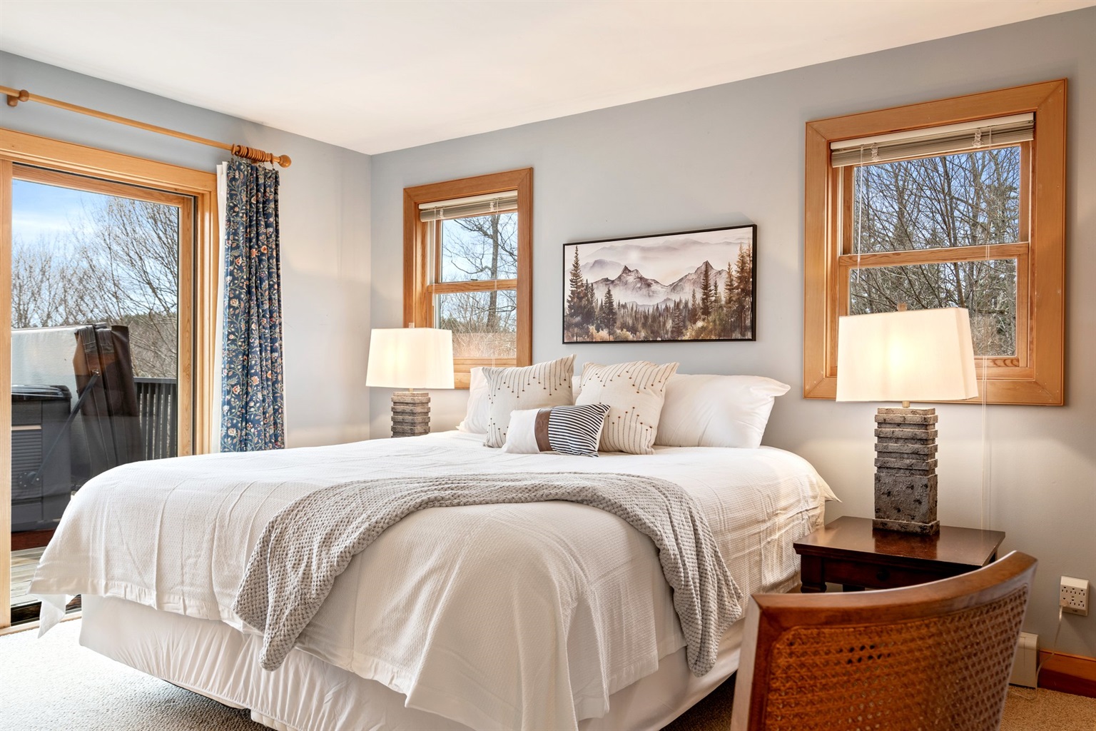 Wake up to sunrise coffee on the deck as the mountains light up, then choose your day: fresh powder at Sunday River, summer hikes and biking, golf nearby, or a front-row seat to Maine’s legendary fall foliage. No matter the season, this is the kind of place you’ll want to come back to.